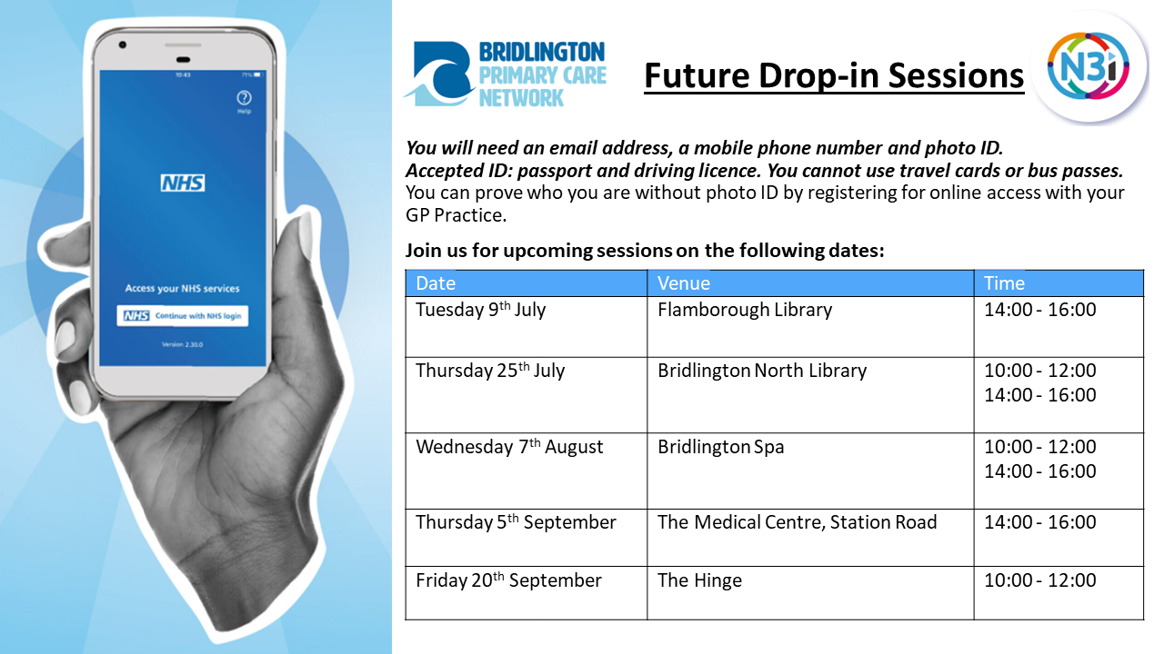 Help with NHS App at Bridlington Medical Centre A drop in session to help patients to help Bridlington residents register, sign up and operate the